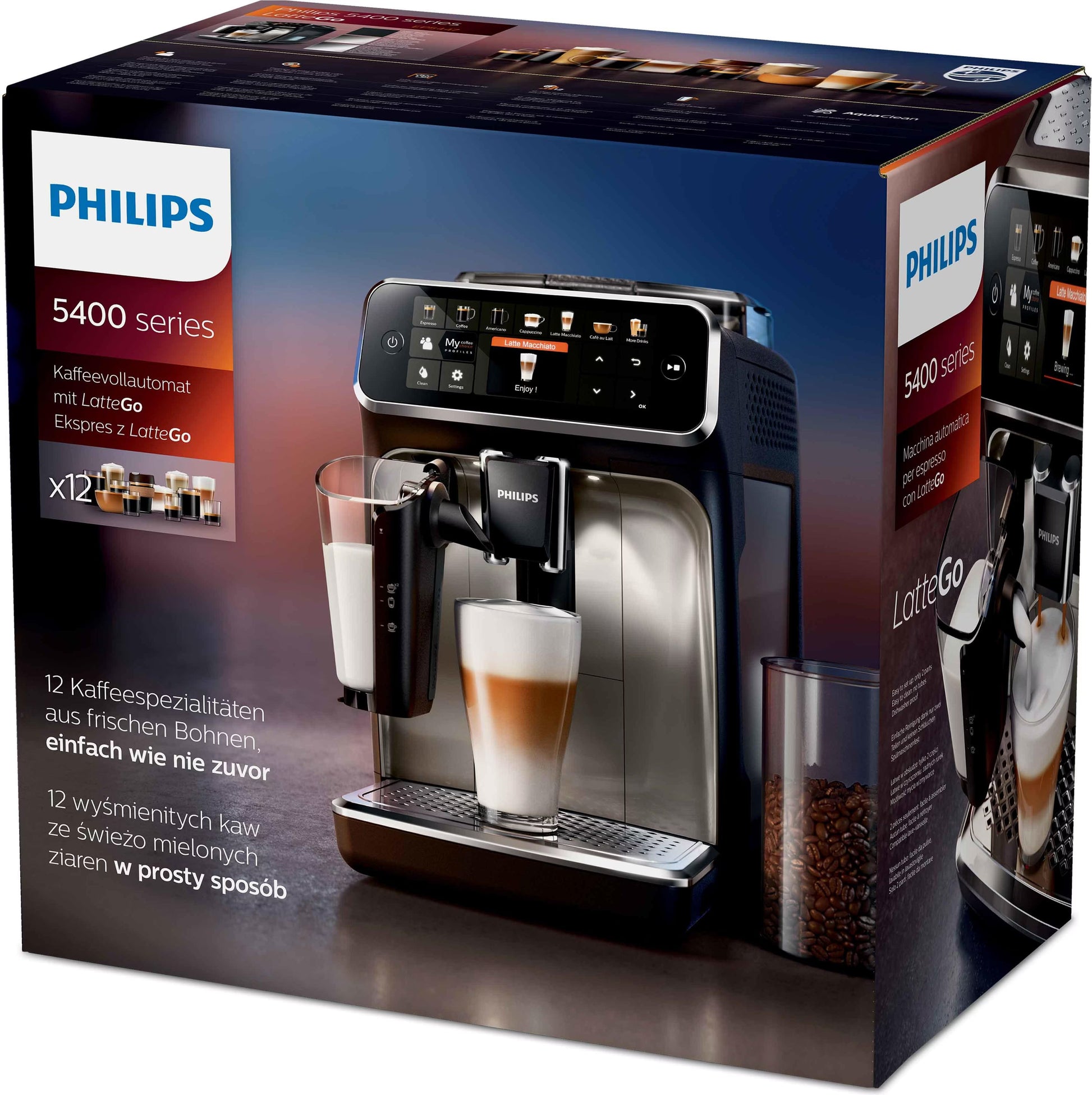 Series 5400 Kaffeevollautomat EP5447/90 – LatteGo Milchsystem, 12 Kaffeespezialitäten, Intuitives Display, 4 Benutzerprofile, Keramikmahlwerk, 15 bar, 1,8L - Schwarz/Chrom
